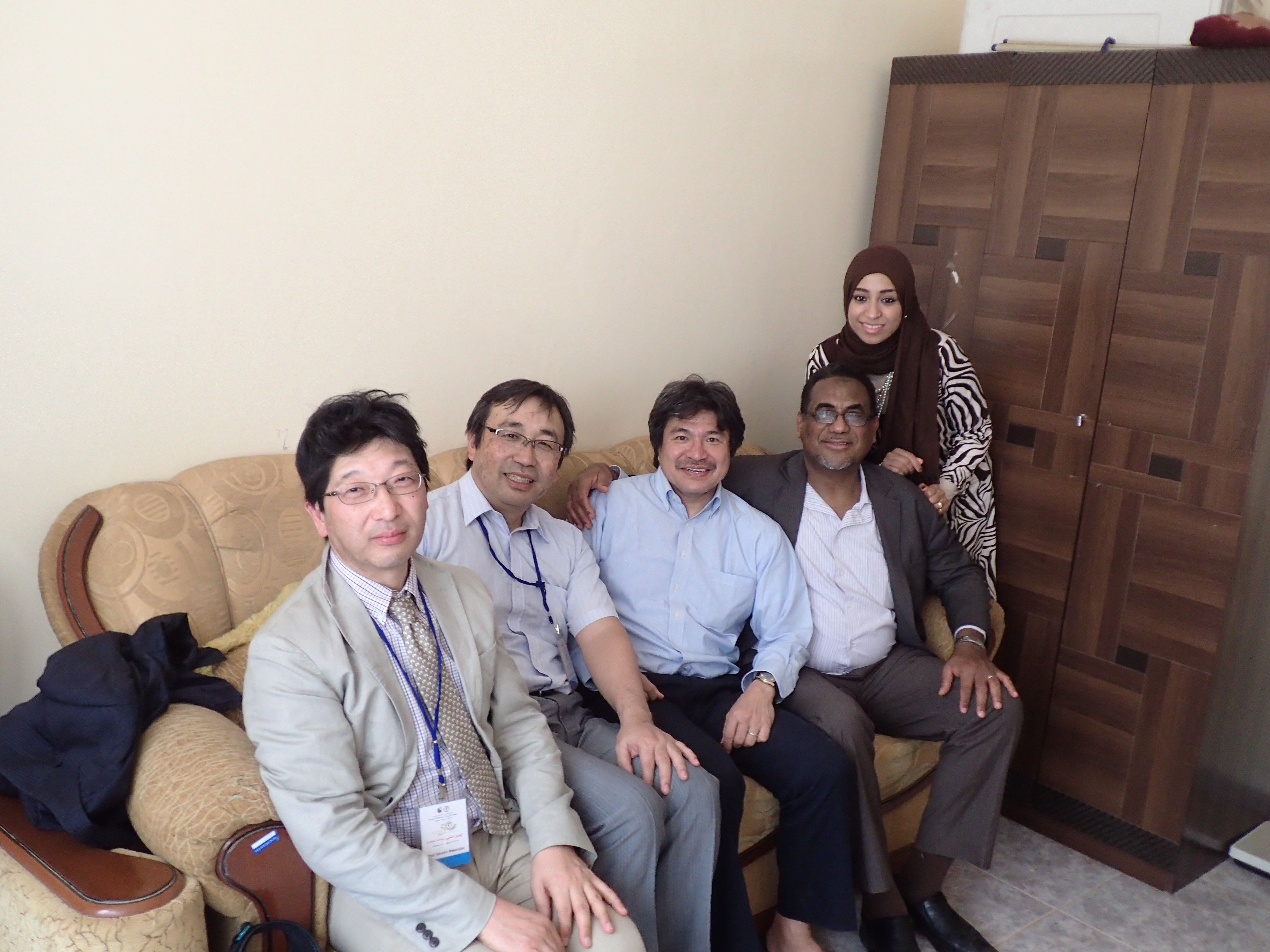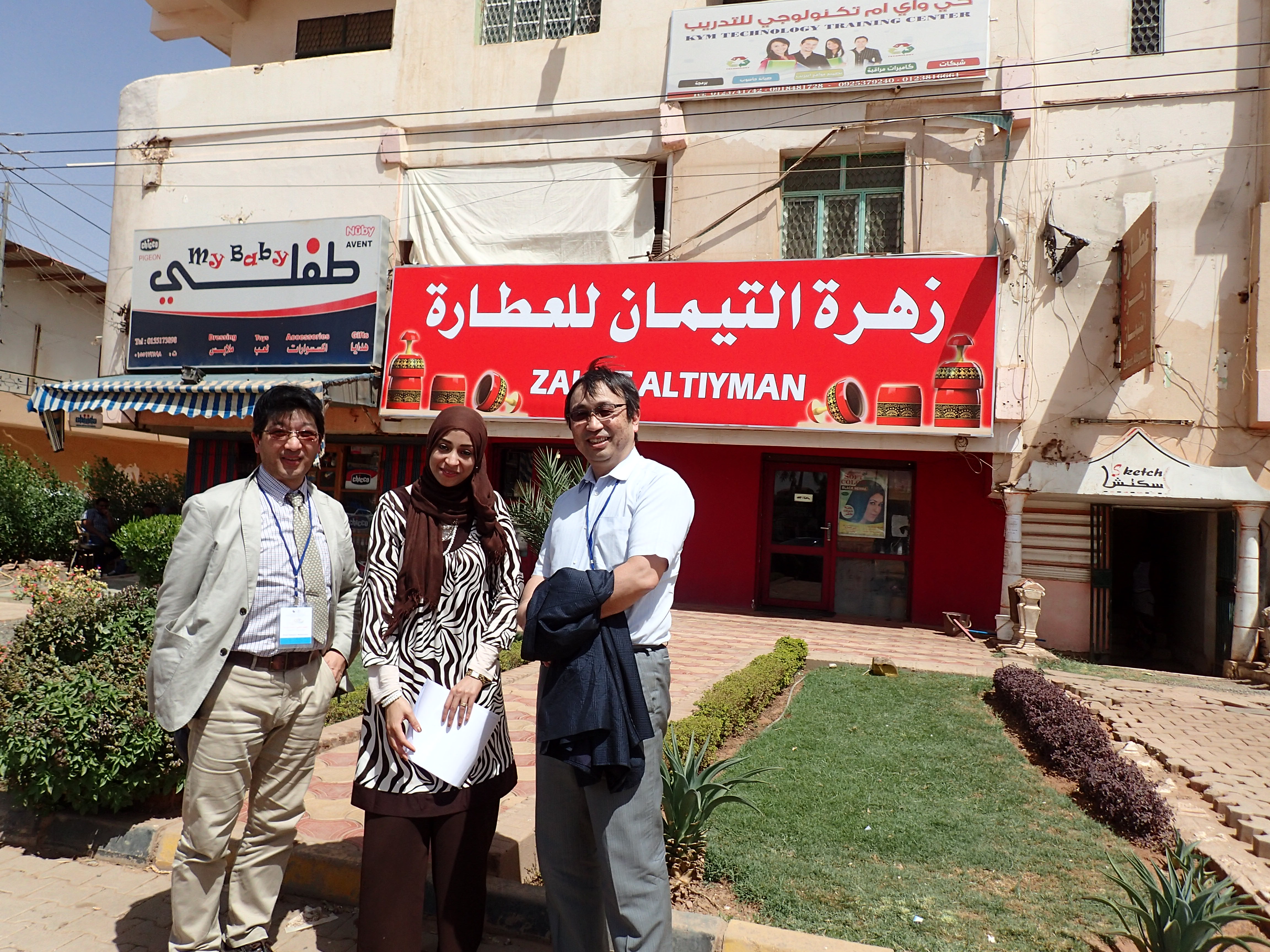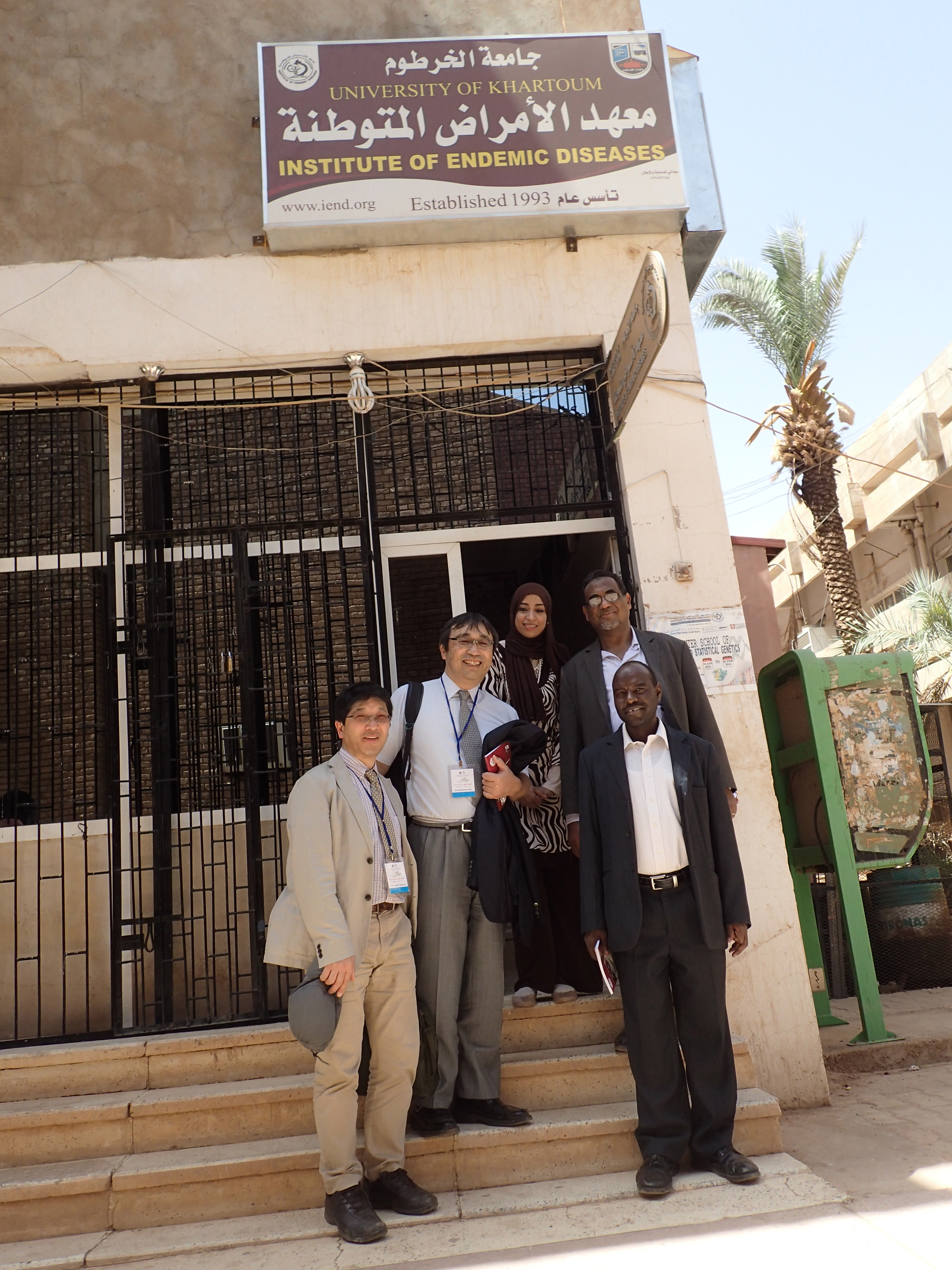 28日の日曜日に到着した後、空港から直接、ハルツーム大学薬学部のシンポジウム会場へ。到着してまもなく、1日先に入っていた渡邊教授がプレゼン。熊薬の有用植物研究がグローバルにおこなわれていること、アフリカのスーダンが人類の起源であり、穀物類の期限であることから今回の連携の意味を伝えることができた。こちらは、昼食は3時くらいという。学部長室で、ランチ(鳥の足の唐揚げと焼いたものがメイン。ナイル川で取れた魚のフライも。こちらでの食事は一貫していた)を取り、その後、ホテルに向かい、シャワーを浴びそして、仮眠後、夜のパーティでの懇談(ナイル川沿いのレストラン)。スーダンでは、アルコールは一切、禁止であるため、ミネラル水で歓談をする。10時過ぎには、ホテルに戻る。翌朝の朝食は、通常のバイキングであり、ホテル(一番良いホテルらしい)の16階からのナイル川の眺めは何とも言えない。白ナイルと青ナイルの合流地点に立つホテルである。朝8時半にホテルを発ち、再びシンポジウム会場へ。ナノメディシンとDDSに関する基調講演(UCLの薬学部からの招待者)を聴き、その後、薬学部の施設や医学の施設を見学させてもらう。前学長および学部長の案内と説明であった。医学部にある感染症研究センターの設備はしっかりしたものであり、きちっとした論文を発表しているラボであった。見学後、ロシナンテスの川原先生のオフィスを訪ね、挨拶をした。その後、薬草を売っているドラッグストアを訪問し、スーダンの植物や薬草に触れた。また、前学長の義理の息子の自宅に案内され、昼食をごちそうになった。ホテルにて休憩後、いよいよセレモニー会場へ。