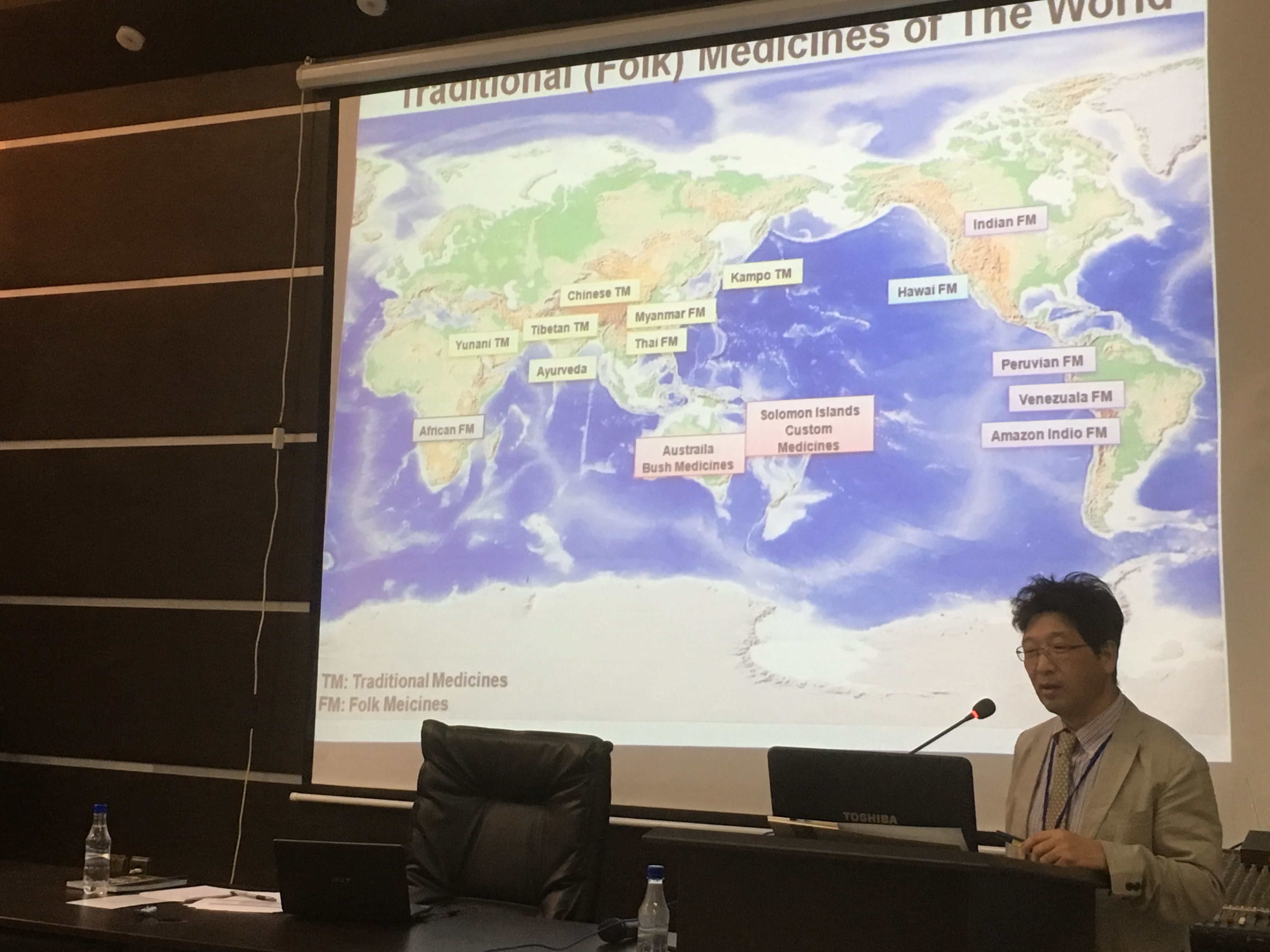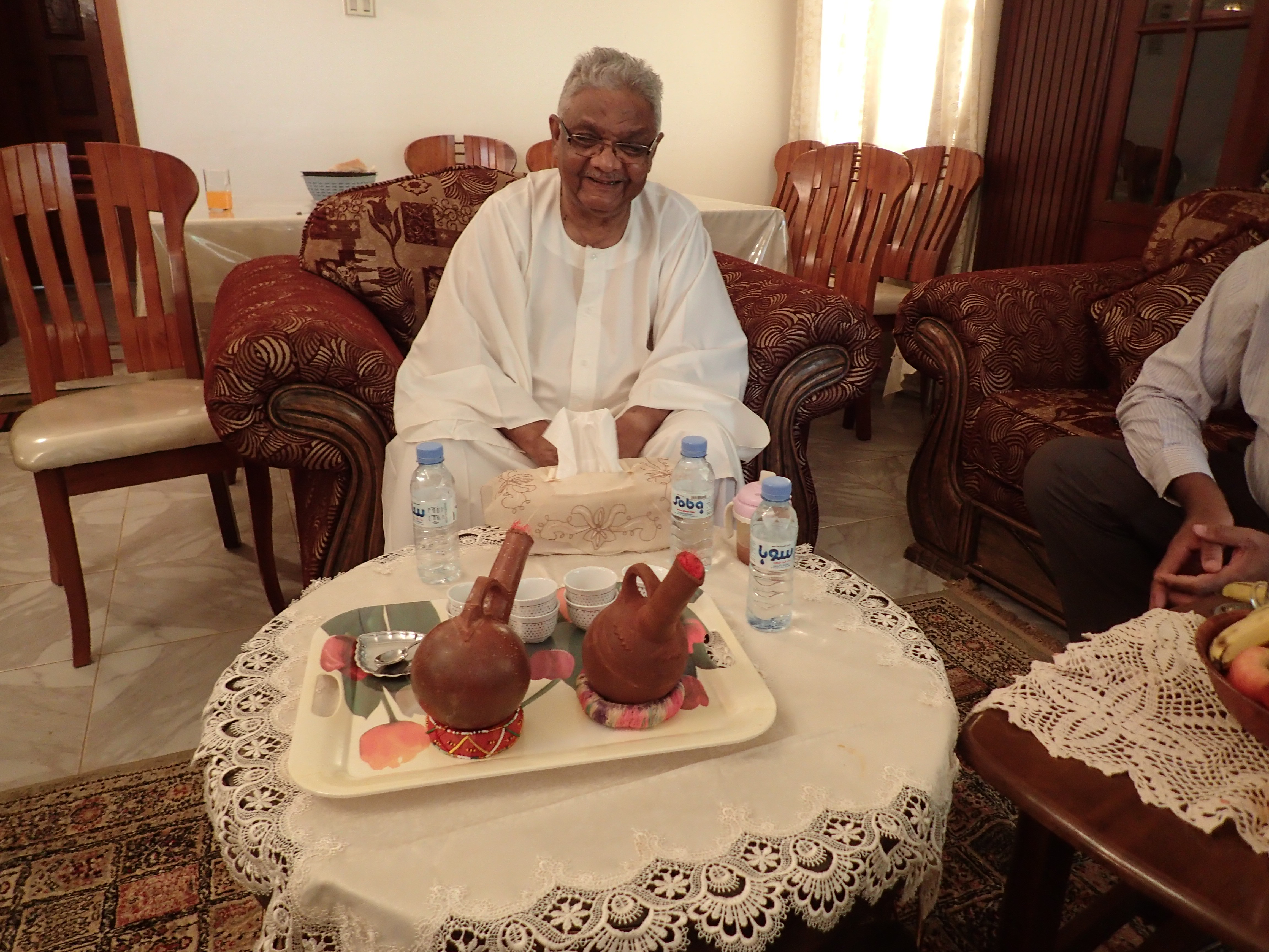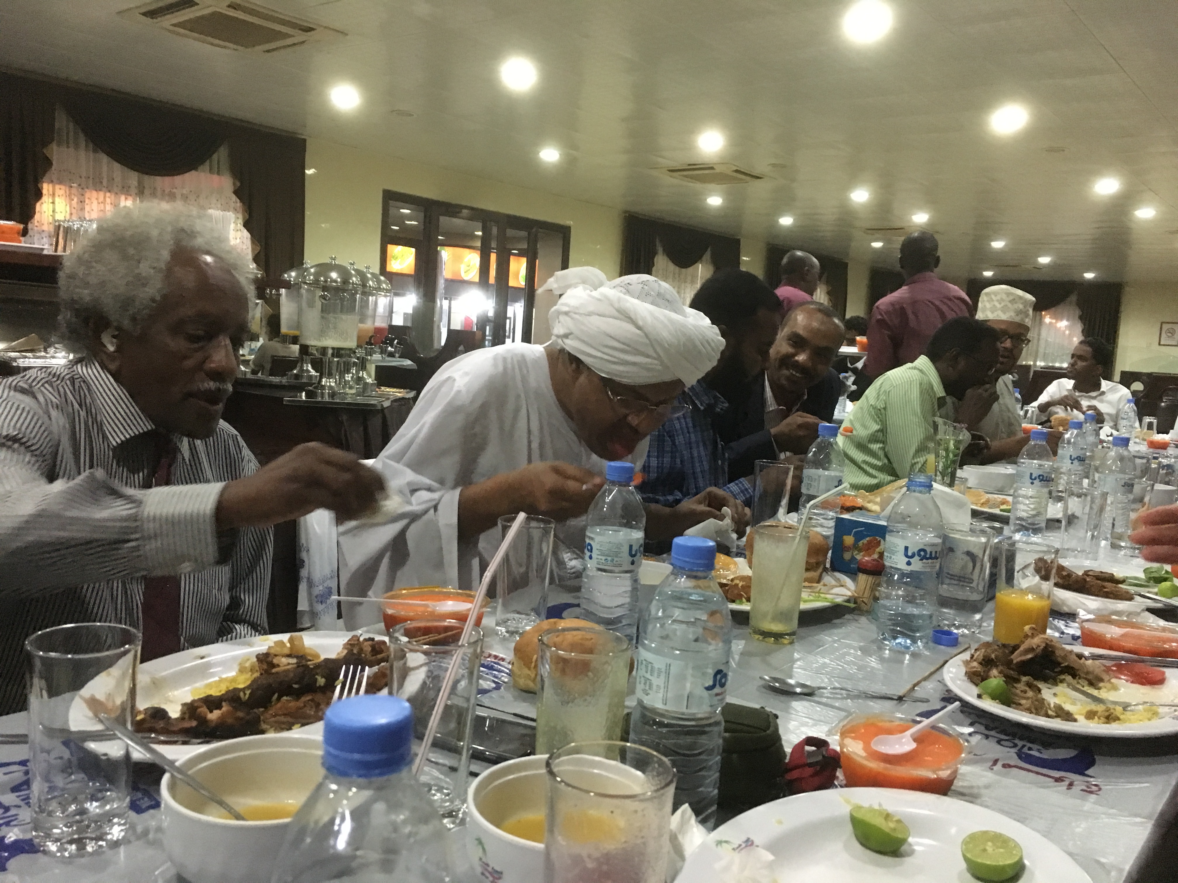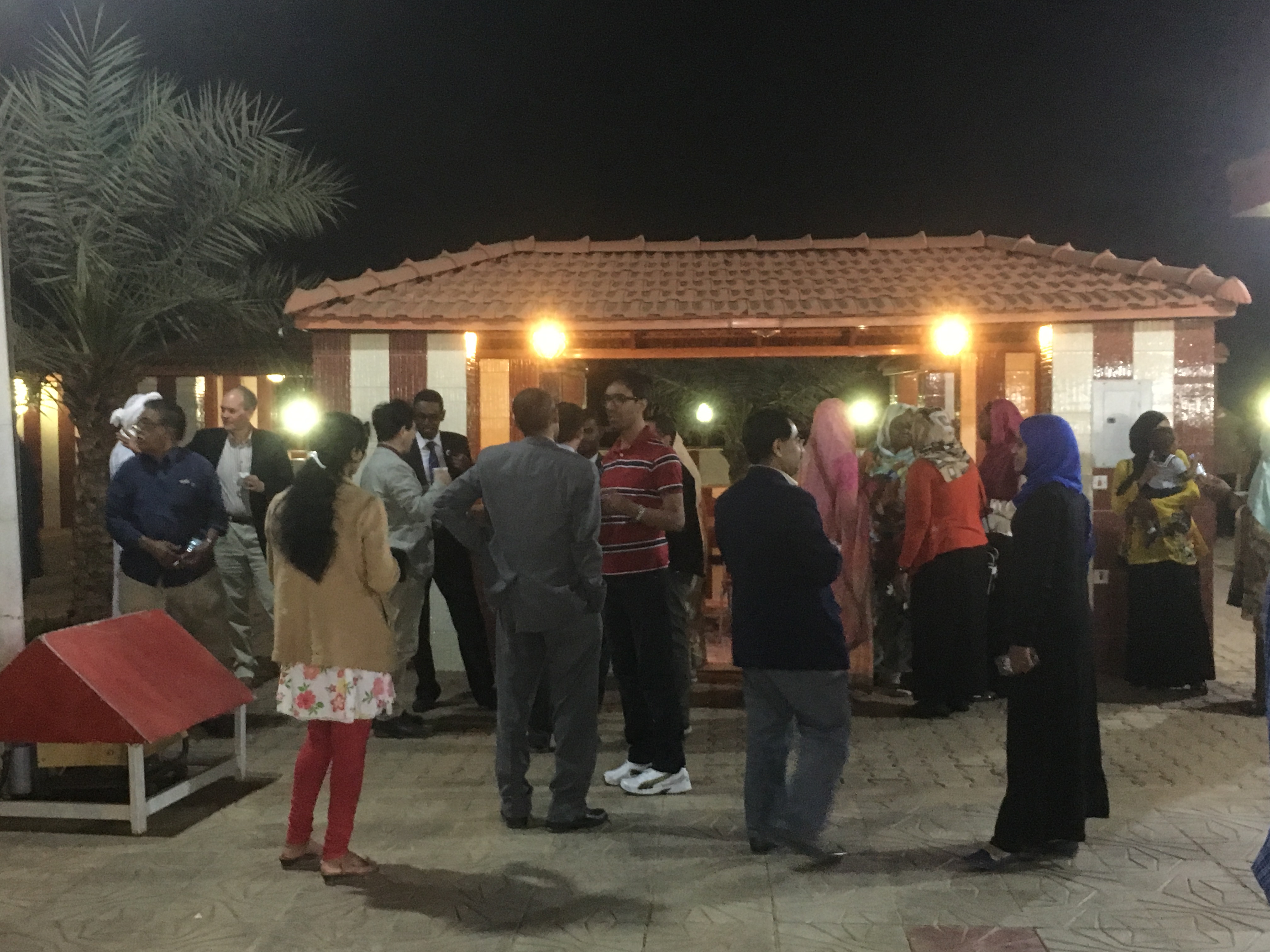 28日の日曜日に到着した後、空港から直接、ハルツーム大学薬学部のシンポジウム会場へ。到着してまもなく、1日先に入っていた渡邊教授がプレゼン。熊薬の有用植物研究がグローバルにおこなわれていること、アフリカのスーダンが人類の起源であり、穀物類の期限であることから今回の連携の意味を伝えることができた。こちらは、昼食は3時くらいという。学部長室で、ランチ(鳥の足の唐揚げと焼いたものがメイン。ナイル川で取れた魚のフライも。こちらでの食事は一貫していた)を取り、その後、ホテルに向かい、シャワーを浴びそして、仮眠後、夜のパーティでの懇談(ナイル川沿いのレストラン)。スーダンでは、アルコールは一切、禁止であるため、ミネラル水で歓談をする。10時過ぎには、ホテルに戻る。翌朝の朝食は、通常のバイキングであり、ホテル(一番良いホテルらしい)の16階からのナイル川の眺めは何とも言えない。白ナイルと青ナイルの合流地点に立つホテルである。朝8時半にホテルを発ち、再びシンポジウム会場へ。ナノメディシンとDDSに関する基調講演(UCLの薬学部からの招待者)を聴き、その後、薬学部の施設や医学の施設を見学させてもらう。前学長および学部長の案内と説明であった。医学部にある感染症研究センターの設備はしっかりしたものであり、きちっとした論文を発表しているラボであった。見学後、ロシナンテスの川原先生のオフィスを訪ね、挨拶をした。その後、薬草を売っているドラッグストアを訪問し、スーダンの植物や薬草に触れた。また、前学長の義理の息子の自宅に案内され、昼食をごちそうになった。ホテルにて休憩後、いよいよセレモニー会場へ。